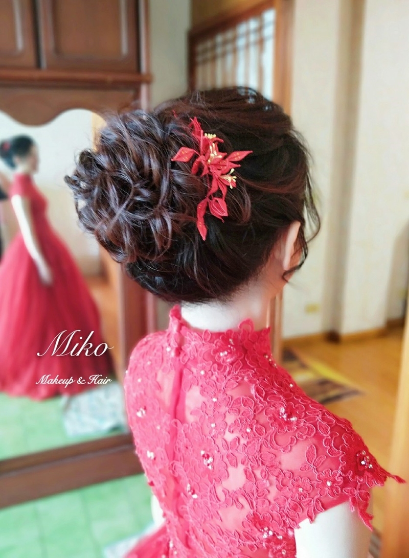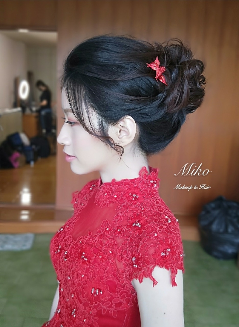 我們在結婚當天前完全沒有見過面,只傳了我愛的髮型和素顏照給米米,並且告知我的五官、頭型大概要注意些什麼,妝不必過濃,自然就好。