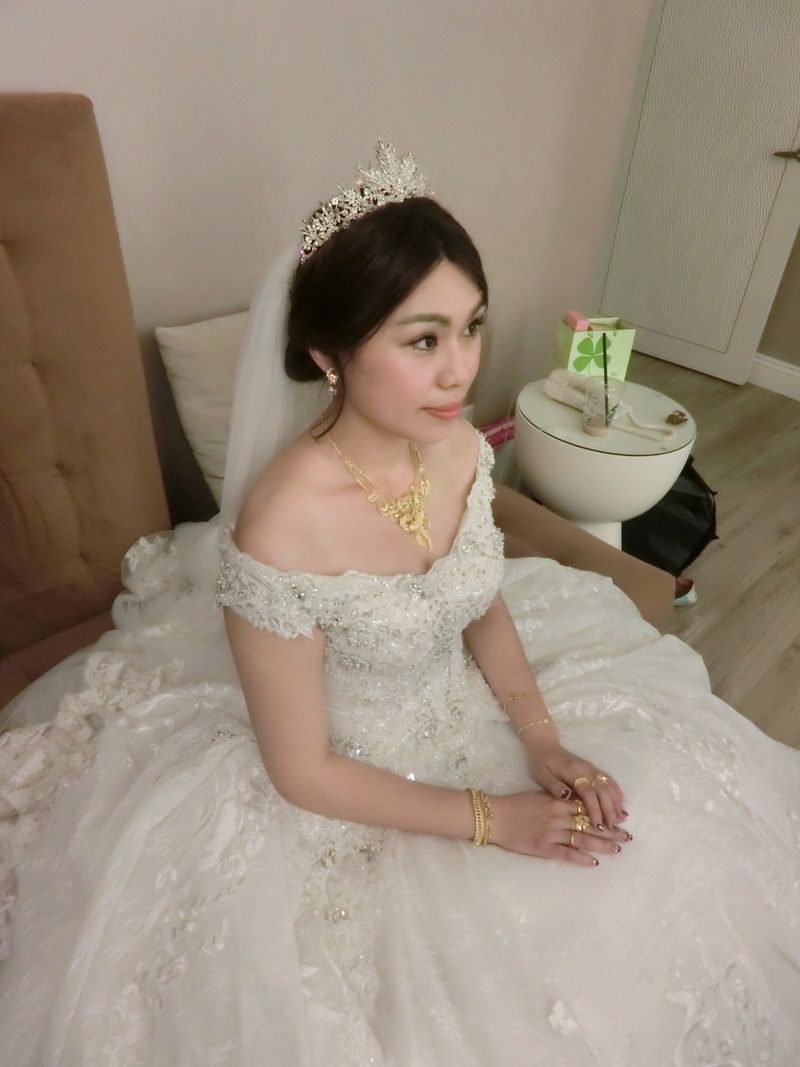 迎娶的白紗因為時間的關係,所以是同一個髮型,換個配件就有另一種風情~美美的😍