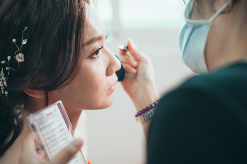 因為和老公兩個都在台北工作,但婚宴和儀式都在高雄,於是婚期確認之後最為煩惱的就是新秘了。畢竟~好的新秘讓妳上天堂啊!許多人推薦的新秘都不在高雄,必須分擔車馬費,費用就會又超出預算許多,或是太搶手的老師檔期通通撞期,頓時覺得絕望,但這時候看到了一篇推薦文,剛好是人位在高雄的新秘,看一看作品覺得很對味,立馬拿起手機加Line詢問檔期,真是命中注定,結婚那天剛好可接,雖然訂婚那天檔期不能,但我還是決定先去試妝,沒想到試妝的妝感超好,連阿母也滿意,所以決定直接下訂,後來訂婚日期有變更,小魚也剛好可以接,你們說說是不是注定好的呢?