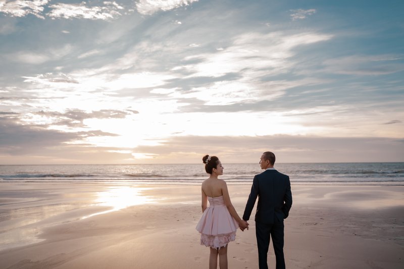 拍婚紗當天是個艷陽高照的好天氣,出發前新秘及攝影師還特別叮嚀我防曬及防蚊要記得帶,拍攝過程中有不舒服立刻講沒關係~
