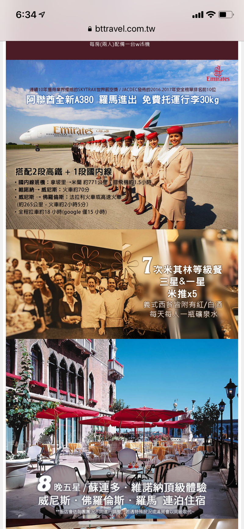 從搭乘的航班、幾段義大利國內線航班和幾段國內快速鐵路、拉車時間的長短、到餐點的安排(米其林、中餐、自費餐點、有無含酒水等皆列為考慮項目)