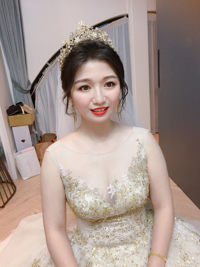 迎娶及第一次進場白紗是選擇香檳金長擺婚紗↓↓↓