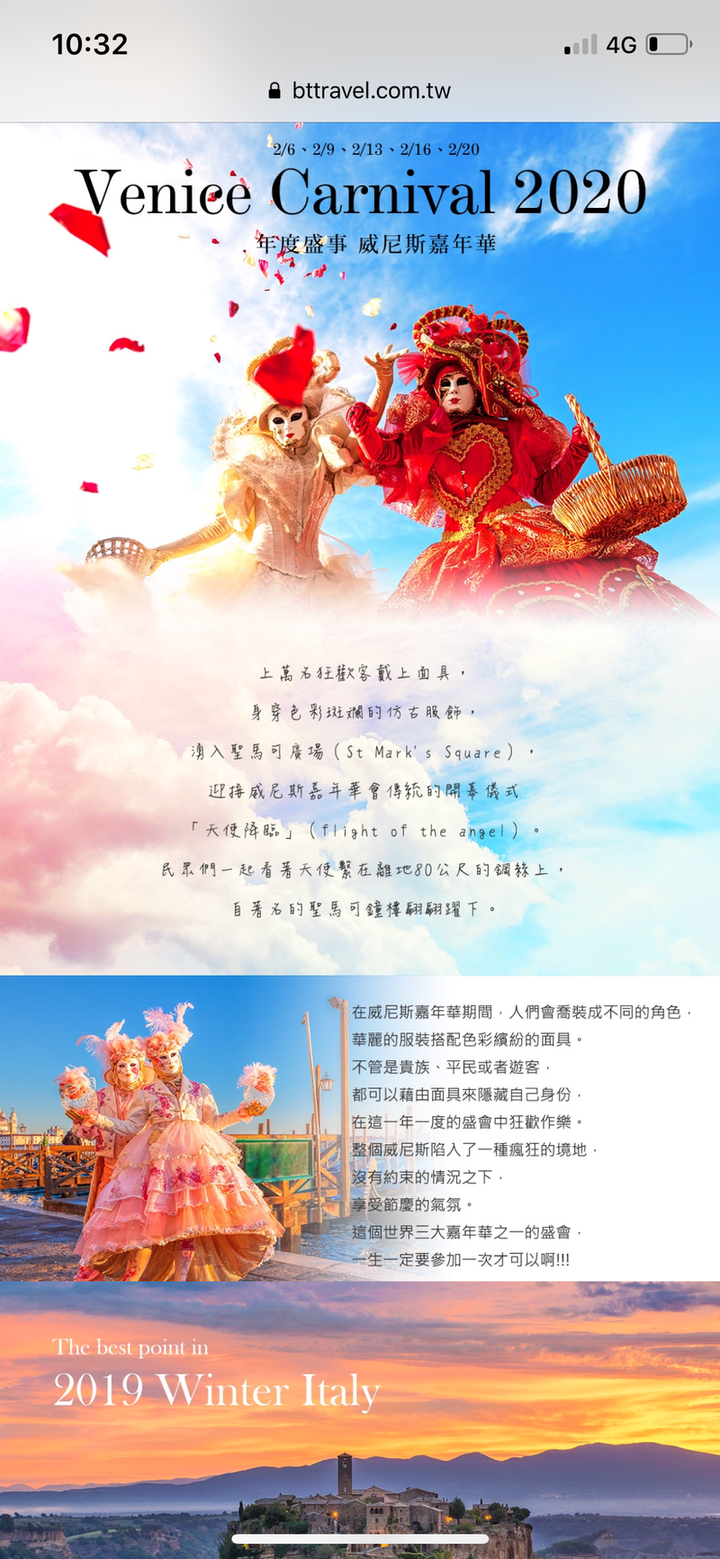 六個月前,我和老婆兩人決定要在小朋友出生之間怒玩義大利一番,我們先是在網路上爬文找尋各家的旅行社,又去了台南旅展,左思右盼之後決定了行程華麗,時間夠長,價值又高的雋品旅行社。由於旅行社位於北部,而夫妻兩在南部,但業務Penny依舊透過網路細心體貼的告知及提醒我們任何手續及相關事項,領隊Arthur 並在出發前舉辦行前會耐心及幽默的告訴大家接下來去義大利的注意事項等等⋯。另外未能到場的隊員也透過錄影方式將影片傳至群組供觀看。並開了line群組一一解答們隊員的疑惑及必要事項,一整個就讓人很貼心。好了,不能再多說了,行李還沒整理⋯明天就要出發囉⋯⋯待續。