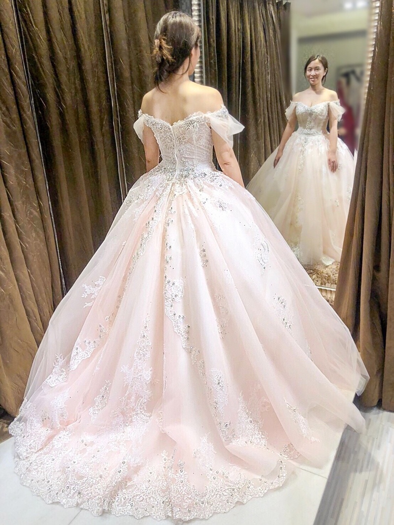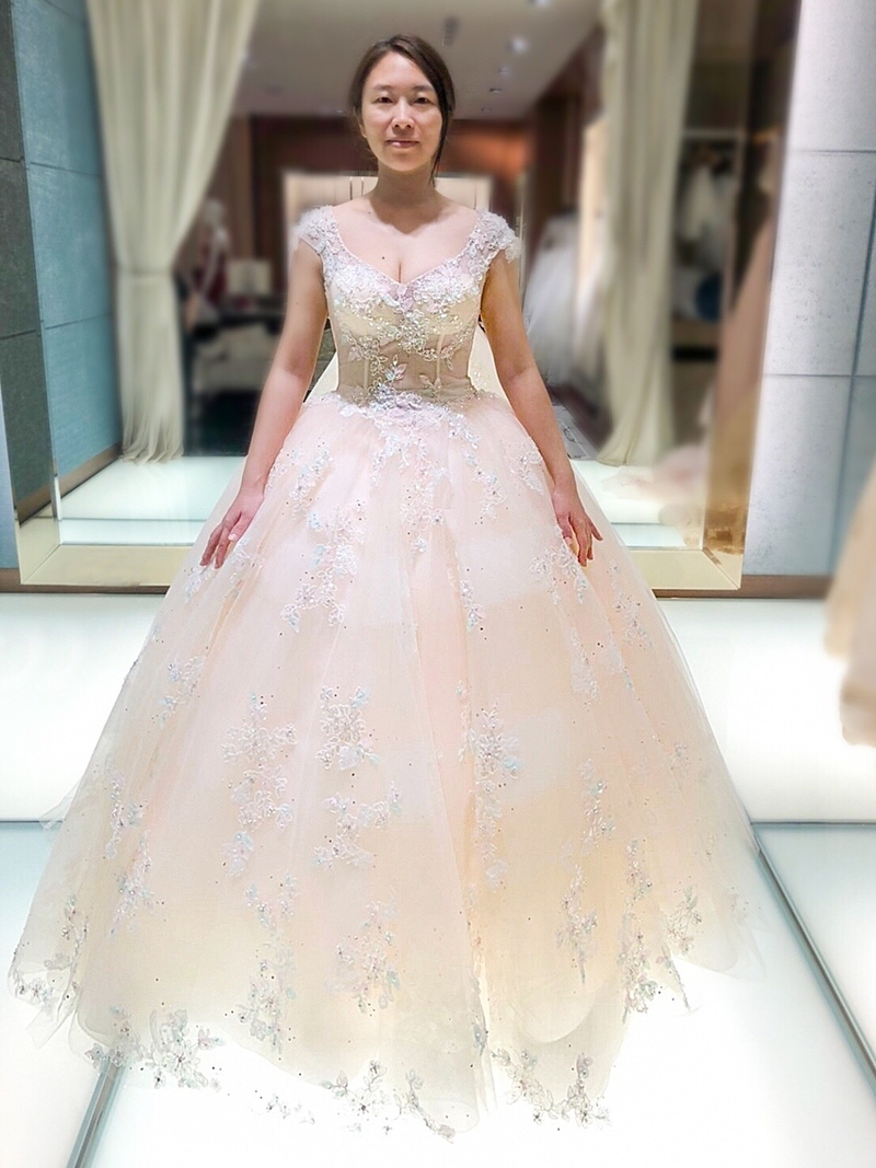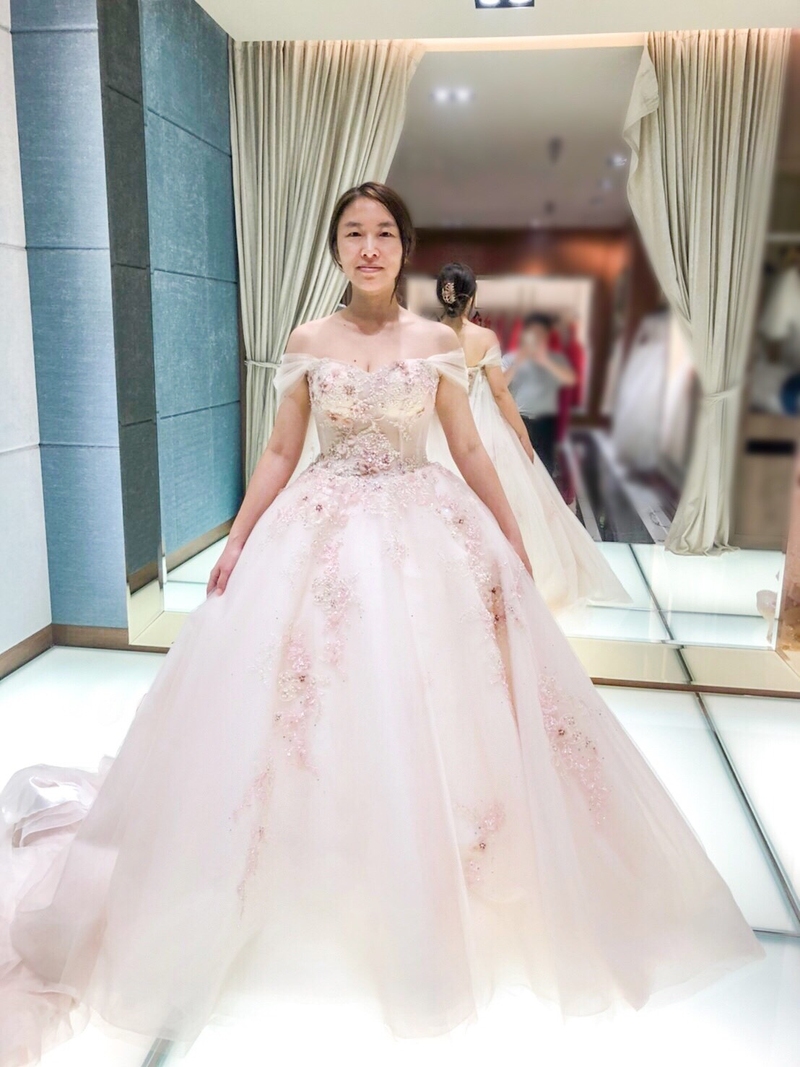 試穿婚紗禮服時,發現婚紗禮服秘書對婚紗禮服瞭若指掌,熟到連婚紗禮服號碼都背的出來,因為沒經驗的我們花了很多時間在試穿與挑選婚紗禮服,禮服秘書庭甄小姐跟助理小嫻小姐,不厭其煩的一直服務到我們挑到喜歡的婚紗禮服,相當有耐心;我們對於挑選婚紗禮服很難下決定,而且一直沉浸在喜歡粉色的婚紗禮服中,禮服秘書會一語點醒夢中人,用她們的專業與經驗,建議我們應該挑選較深色的婚紗禮服,在攝影時效果較好。