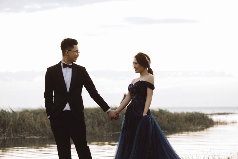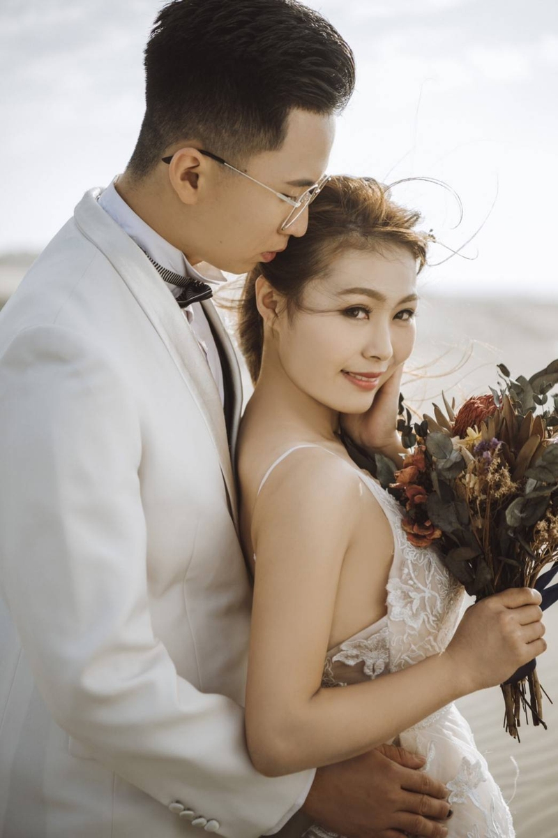 我們的包套方案,拍攝4套婚紗,新郎的西服一樣4套,婚紗公司會依新娘的禮服幫忙搭配,宴客則分別是訂婚2套,結婚3套,前前後後一共能穿到9套,真的很滿足。