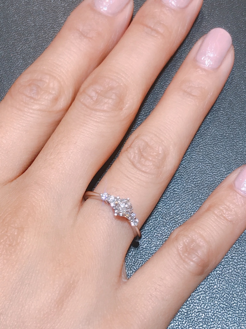 因為姊姊也是用AMC的戒指所以輪到我時毫不猶豫的也選擇了AMC,去到店裡店員都很客氣也不會讓人有壓力,店員也會介紹適合自己的款式,因為我們屬於急件店員也持續追蹤進度,鑽戒的部分老公選擇淨度很高的D color 整顆鑽石白又亮,一生一次的結婚就用AMC家的絕對不會錯。