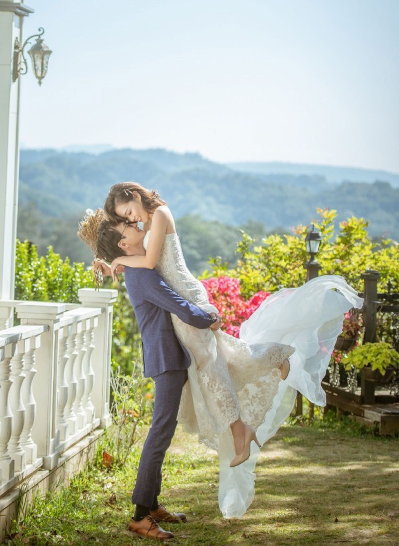 攝影師一開始先拍新郎抱起新娘的pose,沒錯就是要在一開始才會很有力氣的抱起撐比較久
