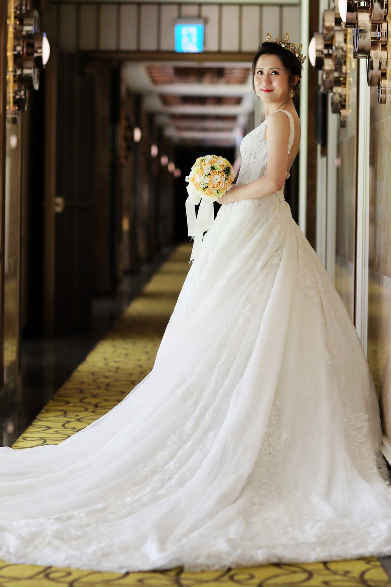 店員Doris耐心介紹我們的需求一一解答安排試禮服、拍攝時間、額外需要的搭配⋯等等。試禮服珮瑄讓我們輕鬆愉悅慢慢挑選,當下我們有疑問立馬幫我們處理,讓人安心⋯接下來拍照讓人有信心會是很好的成果。