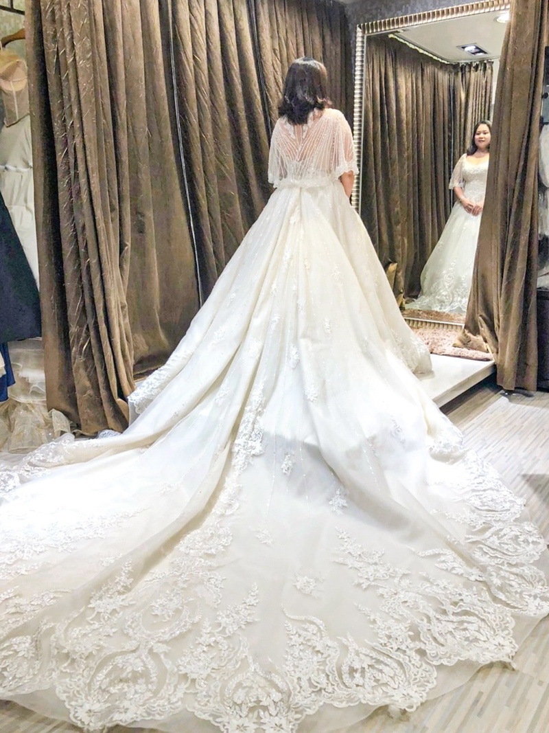 到了試婚紗禮服的日子,門市庭甄妹妹拿了ㄧ套又一套的婚紗禮服讓我試穿,樓上樓下的來回奔跑,細心的幫我選擇我想要的需求跟風格,款式應有盡有,在這我可以滿足我想要的需求。