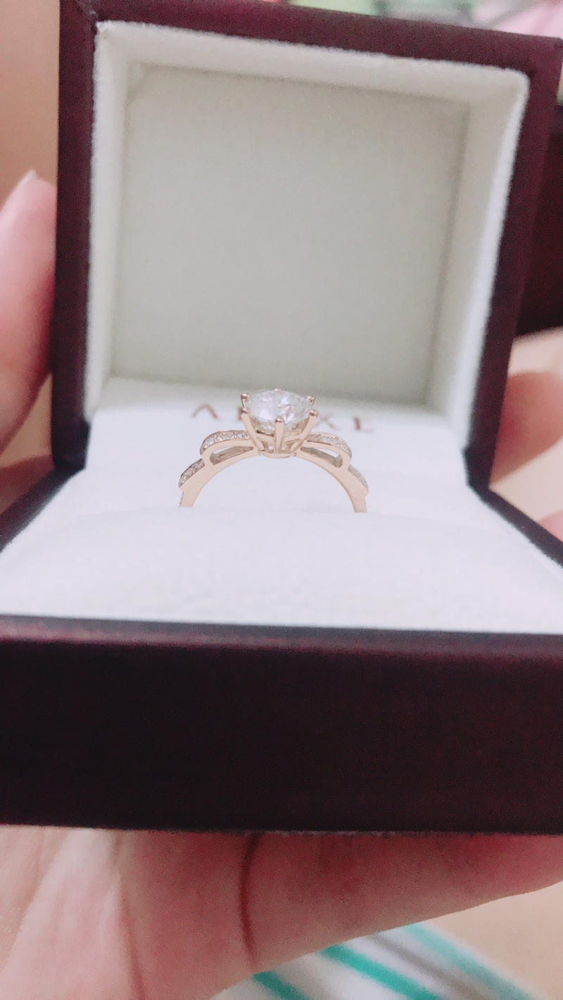 因為是驚喜所以沒有帶老婆去量戒圍,不過專業的服務人員,只問了我老婆的大該體重與身高,戒圍就拿的剛剛好! 真的很厲害!