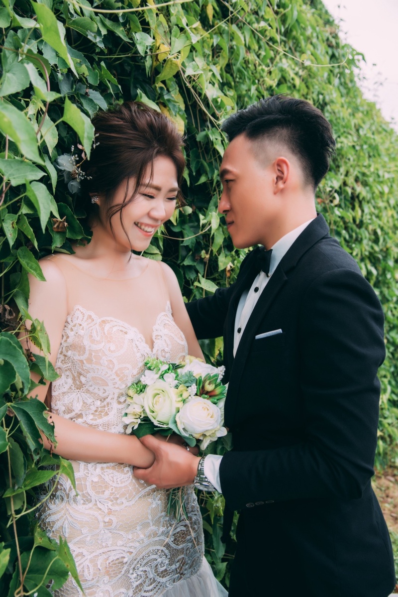 年初時到這家去看看聽說厲害的手工婚紗,一進去真的美番,接待人員Mia很親切健談,第一間參考的婚紗店就馬上下訂了~~拍了將近半年才完成(每次到拍照當天就下雨><)肢體動作與表情都很僵的我在攝影師Woody與助理阿澤的帶領下進入狀況(反正拍攝過程就像出遊一樣),但真的累到爆炸.....