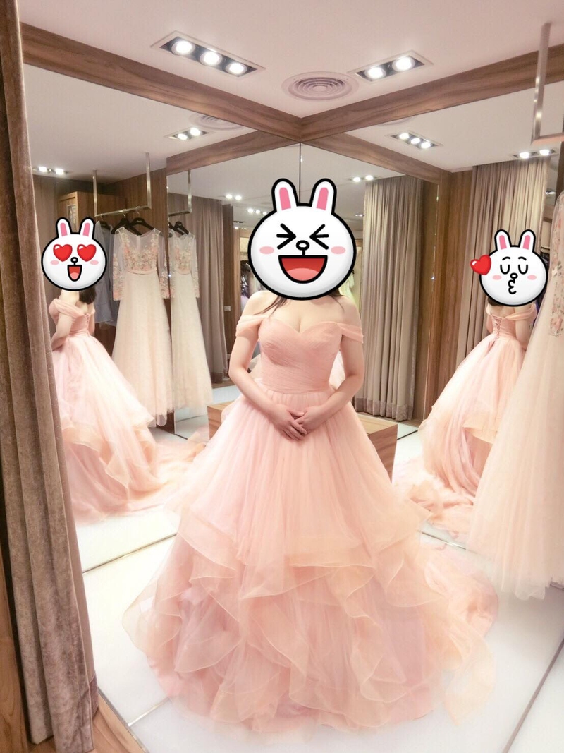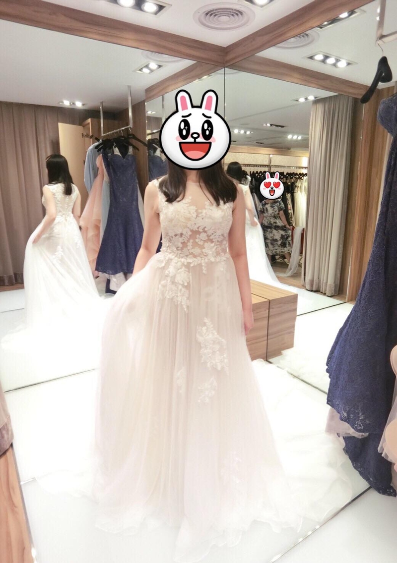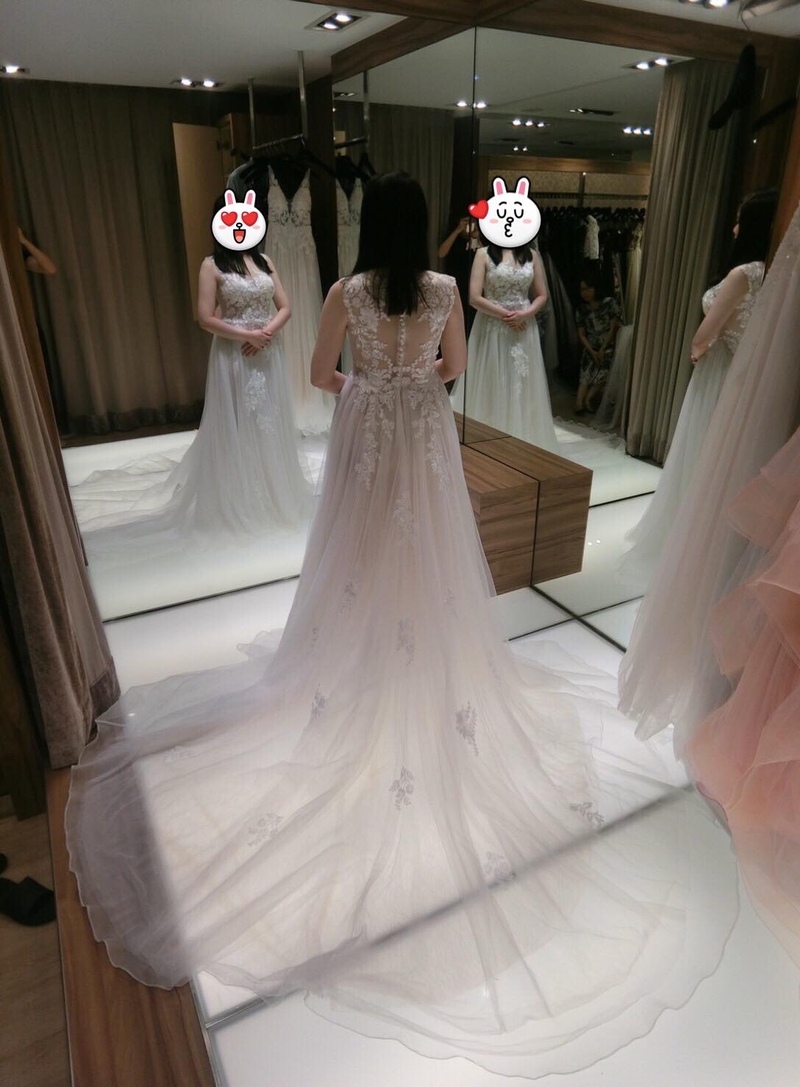 試穿的過程中,Sophia一直微笑的回答我所有問題,幫我把身材最好的部分突顯出來,並且修飾身材上的缺點,讓我的自信提升。然後Sophia也會親切地和我的老公、朋友一起討論每一套禮服適不適合我,最後我們選定四套婚紗,謝謝Sophia的盡心挑選。