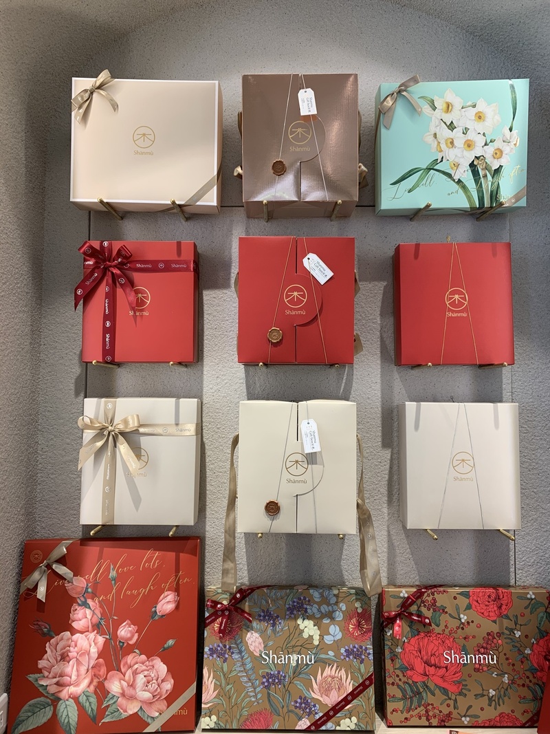 質感大地的米色雙層禮盒,單盒780元。優雅紅色雙層禮盒,單盒860元起。玫瑰鉑金雙層禮盒,單盒980元起。包裝已含緞帶提繩、銀繩、封蠟跟吊卡。所有內容物都可以自行挑選山木島的各款餅乾跟糕點,大量訂購另有折扣,完整資訊詳洽文末店家資訊。