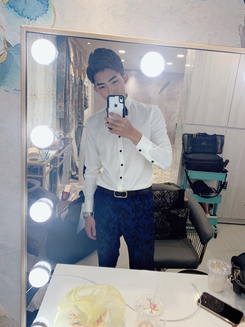 (化妝的時候,老公已經迫不及待的自拍了呢)