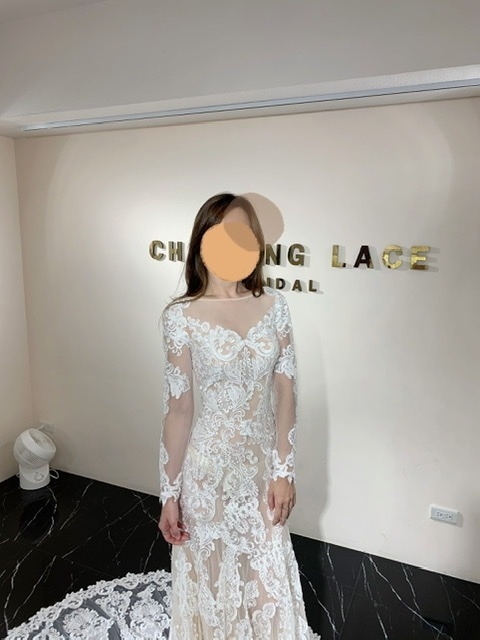 原本很抗拒長袖的裸紗,但禮服就是要穿上,配上高跟鞋,整個氣勢就出來了呢!