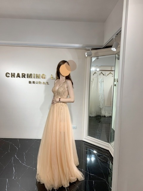 第一次進入參觀時,看到許多美麗的國外婚紗,忍不住就直接試穿了,Sam及Cindy服務態度很好,也很能馬上知道顧客需求及風格,讓我在做完功課與他們討論後,能迅速找到自己心目中的禮服,也期待拍攝的當天成果。