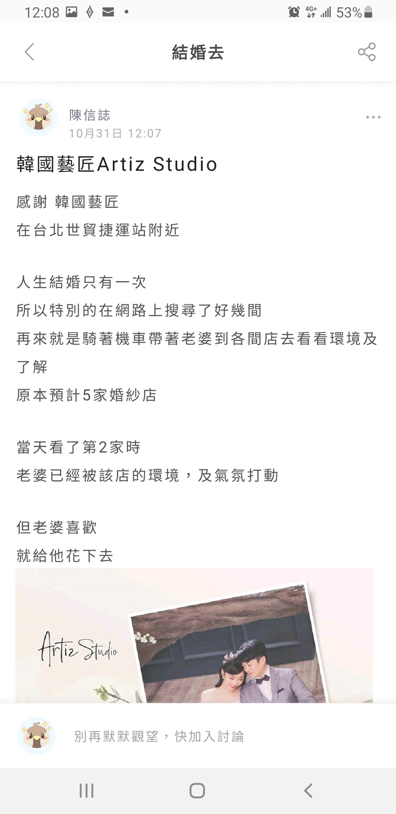 超讚婚紗 陳信誌 推薦 1 次熱心留言 2020-10-31 到訪店家 服務員Fifi很細心的跟你介紹菜單當然也要看環景才能了解菜單內容店裡有40個景可以選擇選了15個做為拍攝 再介紹禮服,西裝,化妝間老婆看了一圈就這樣 老婆被說服了……………… 推薦商家 韓國藝匠 Korean Artiz Studio 評價 (835) 覺得 讚爆了超推 00 96 次瀏覽 讚 留言 收藏 分享 分享 分享至 LINE 分享至 Facebook 複製連結