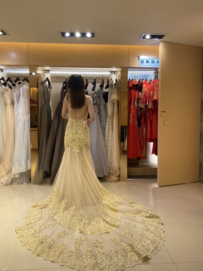 下面奉上自己試禮服的美照~🤪