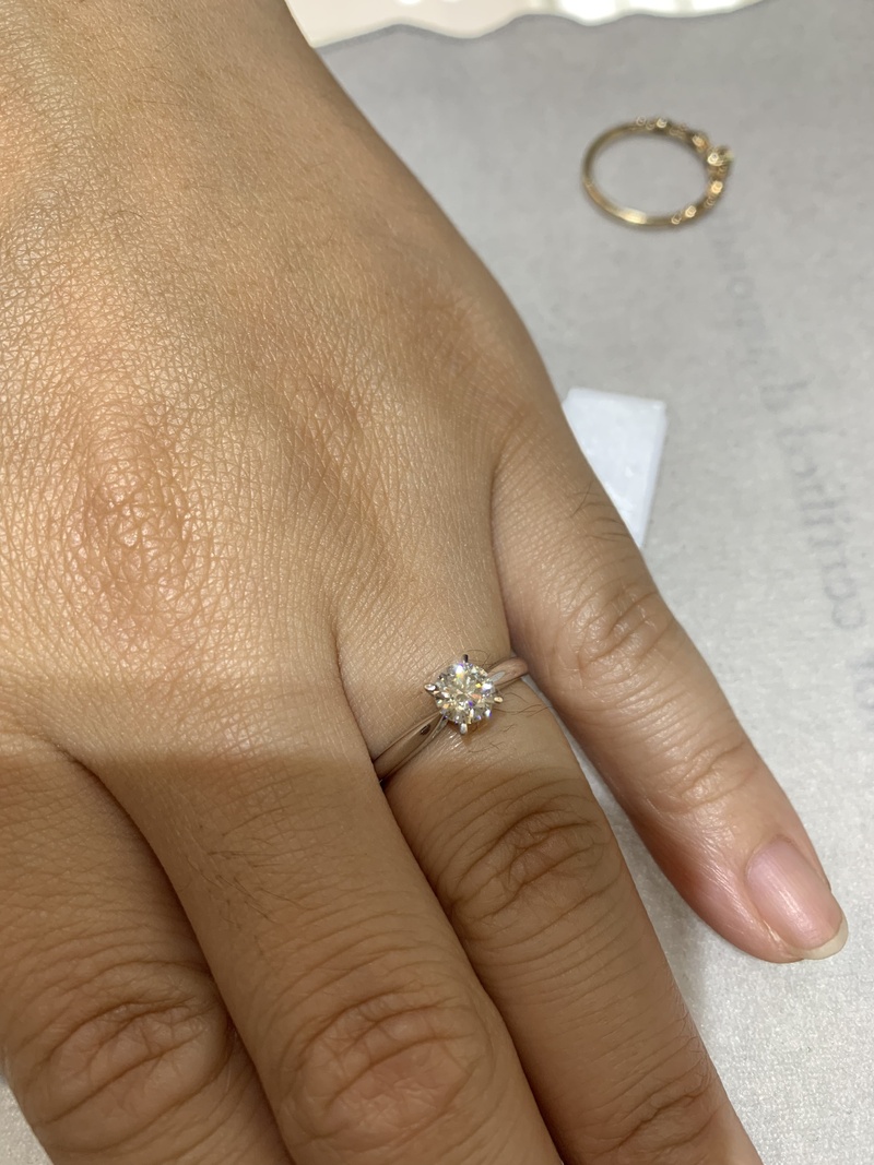 總之求完婚後,12/15的晚上再帶準夫人去挑選她喜歡的戒台,當天過去時間實在有點尷尬,因爲店家21:00休息,我們大約20:15分左右到,但小姐還是非常熱情的接待我們,最後我們選好戒台的時間將近要22:00了,實在有點晚,況且當天晚上氣溫下探約13度🥶耽誤到店家下班時間實在感到抱歉;小姐敬業的精神及想給客人帶走幸福的感覺我感受到了。