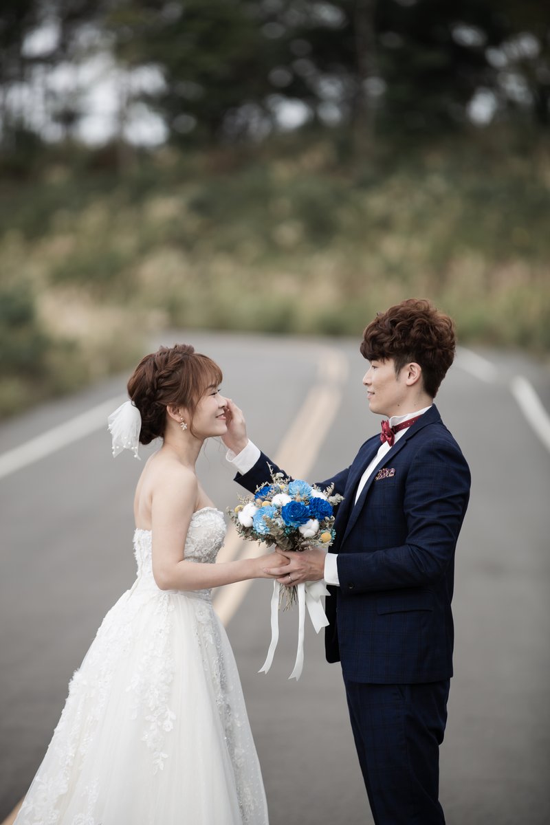 還記得第一眼看到Joe老師,是種很Free & Rock的個性(Yo man那種),很感謝Joe老師知道了我們想拍的路線跟感覺,很肯定的建議我們更換禮服,我們很擔心三套都白紗會不會太類似,還好Joe老師當天把三套白紗拍出完全不一樣的感覺,Joe老師真的很專業,靈感不斷湧現,我們完全就是跟隨老師的引導就拍到了我們當初溝通想法的感覺,再加上自己想要的動作姿勢,這次的拍攝真的完美,而且Joe老師竟然可以接受我們安插半途看到想拍的場景,讓我們自由發揮,拍好拍滿,包車時間總共9小時,沒錯!就是因為這樣所以看到毛片非常滿意,很期待相本印製的成品。
