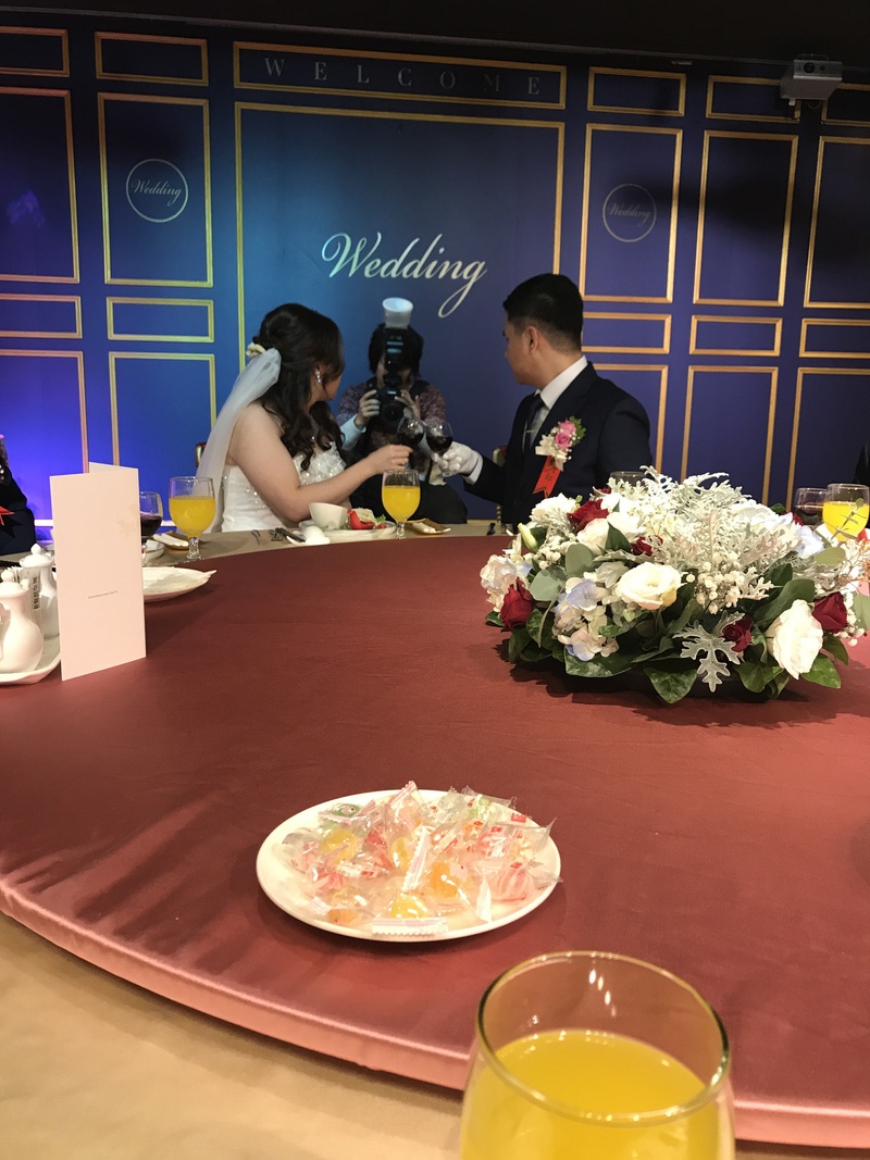 雖然提前訂桌,可是今年因為疫情關係,能來參加的親友數非常難捉摸,因此從原本的大桌數改成小桌數,也謝謝彭園婚宴-板橋店的體諒!