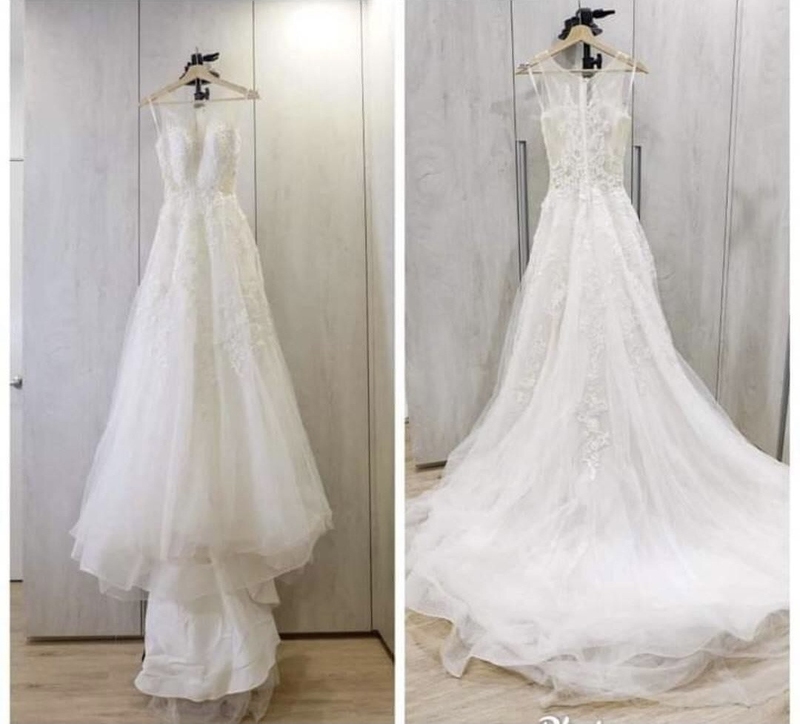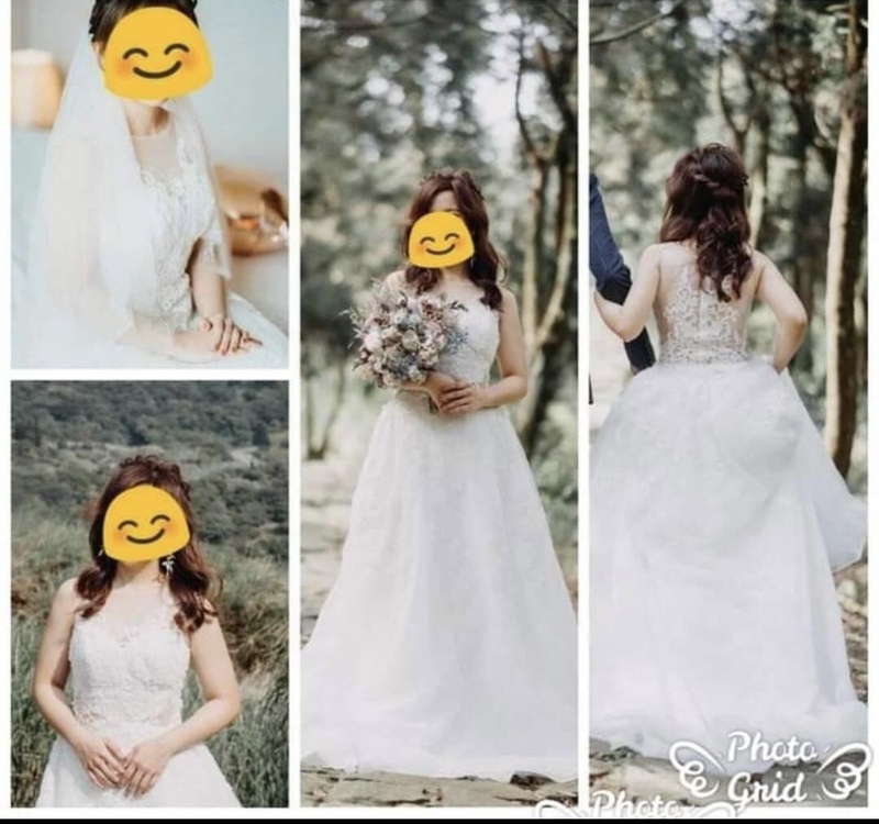 (已售出)小櫥窗桃心領蕾絲A-Line小拖尾白紗