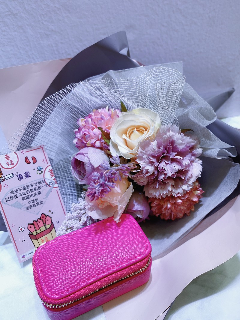 今天帶著心愛的人一起來挑選喜歡的戒指,也參加了聖誕詩籤活動,抽到了迷你珠寶盒,剛好可以讓老婆帶著出門,非常的便利!