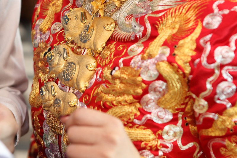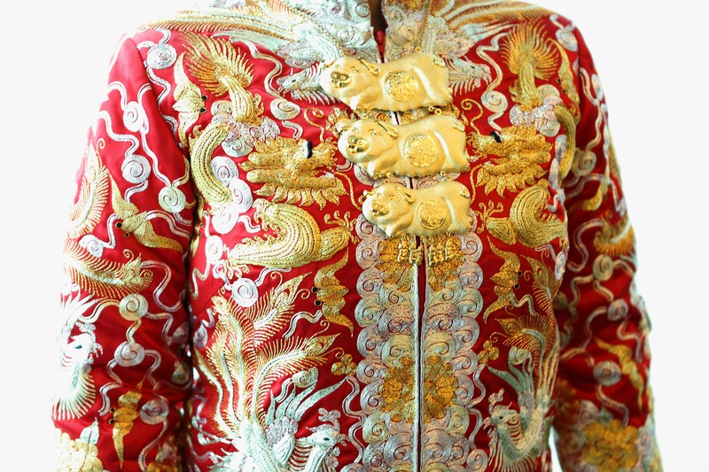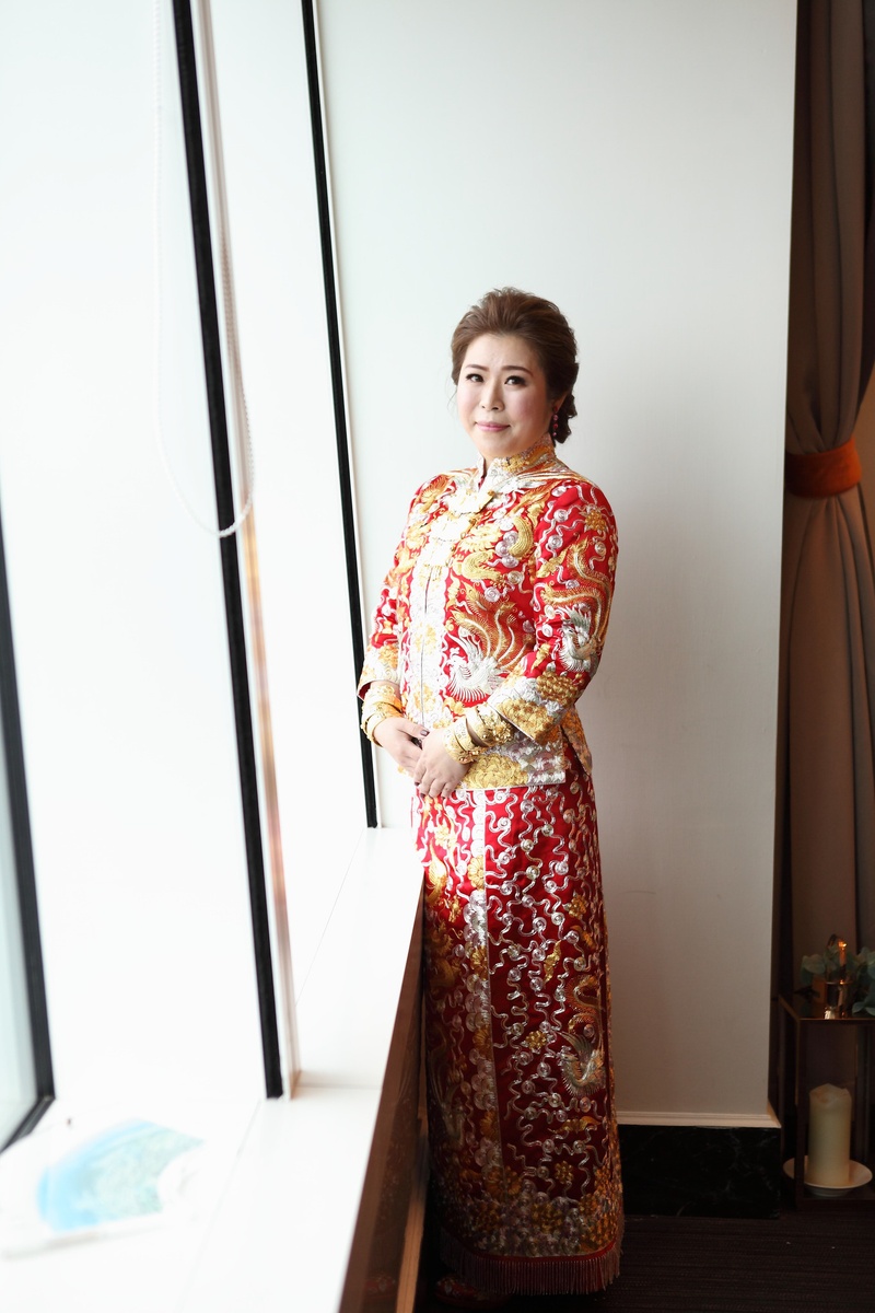 店家位置滿好找的,服務人員是Joanne,是一位大正妹,非常親切,當天專業的幫我準備龍鳳褂讓我試穿(還戴上手套唷),並且將龍鳳褂及相關的寓意全部都跟我說明一遍。龍鳳褂的質感,真的是要親眼看過才知道,非常非常有質感的龍鳳褂,而且Joanne還會針對你的身型給予專業的建議,中間的過程Joanne還不厭其煩的提醒我很多關於文定儀式上面,習俗部分要注意的事情,最實用的就是教我如何奉茶,奉茶的姿勢等等。