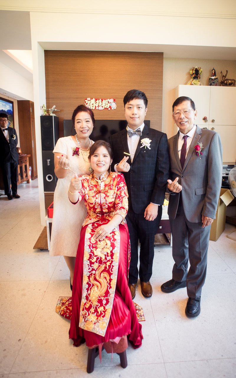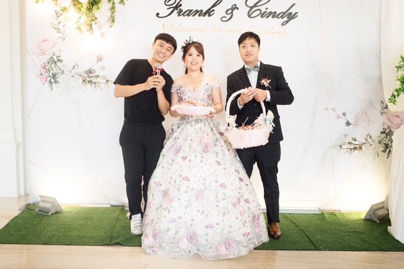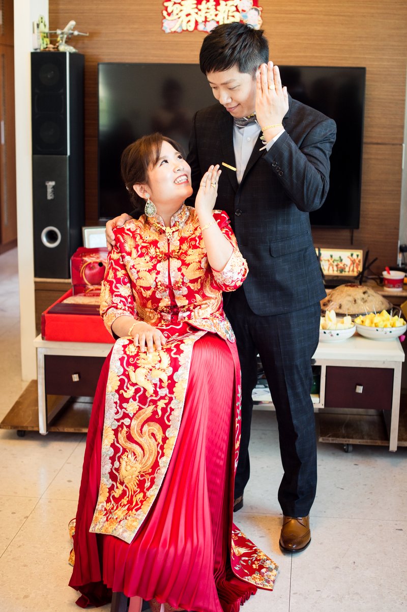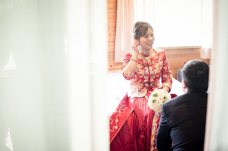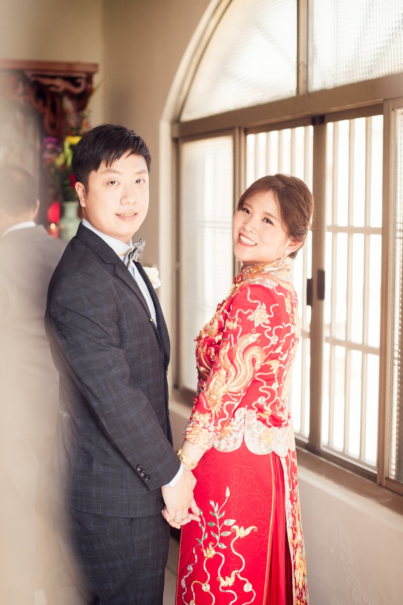 我們是訂結一起,所以當天的行程算是非常的緊湊且大家都很緊張,但是鱷魚先生用風趣但又專業的方式讓所有的訂結儀式圓滿完成。由於事前溝通時我有許願要有類婚紗,鱷魚先生一直放在心上,抓到空檔就幫我拍類婚紗,還準備了道具,幫我拍了婚紗照沒有的頭紗,真的是超級感謝的。