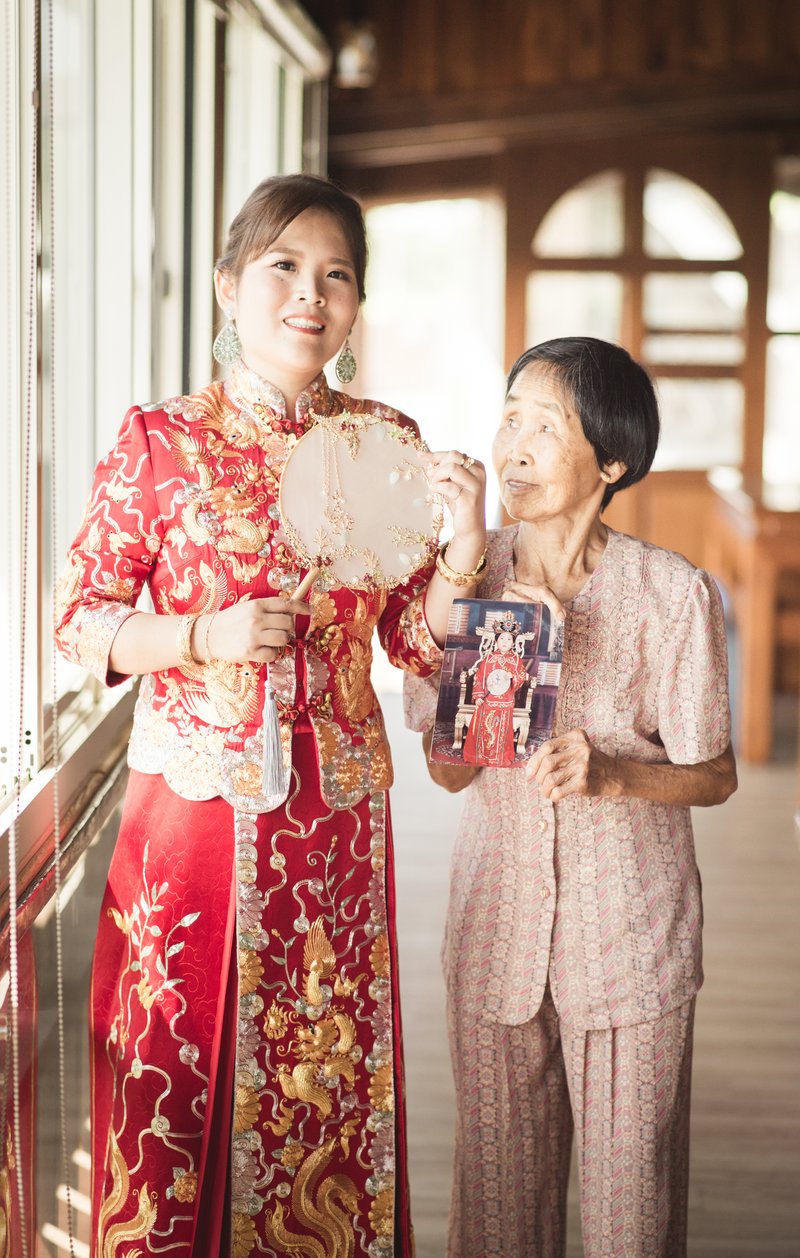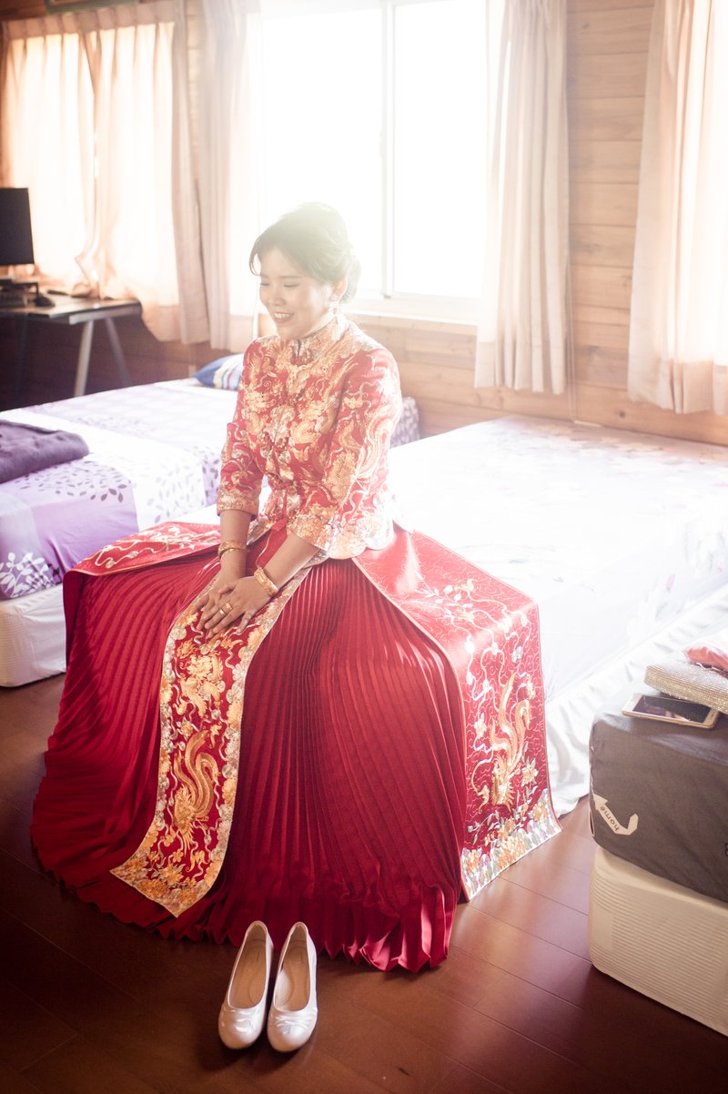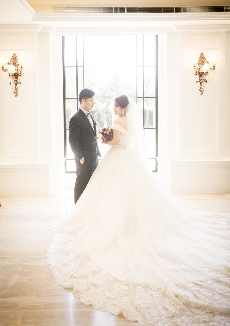我們是訂結一起,所以當天的行程算是非常的緊湊且大家都很緊張,但是鱷魚先生用風趣但又專業的方式讓所有的訂結儀式圓滿完成。由於事前溝通時我有許願要有類婚紗,鱷魚先生一直放在心上,抓到空檔就幫我拍類婚紗,還準備了道具,幫我拍了婚紗照沒有的頭紗,真的是超級感謝的。