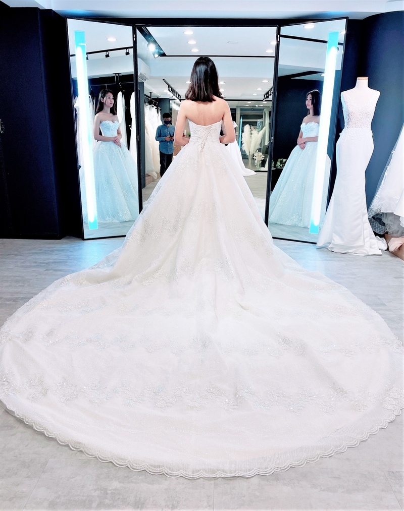 Anyway 僅僅才試穿完就滿滿期待之後的婚紗照跟宴客禮服挑選 聽小涓說幾乎每月都會有新禮服來店裡 很怕之後選擇障礙因為太多都太美了😭