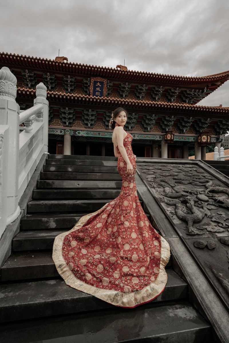 拍攝時攝影師童sir跟燈光師郭sir很會帶動氣氛,讓我不會在拍攝時感覺到尷尬或是尬笑,童sir也很有耐心的指導動作讓我拍到一張超跩的照片😏讓人驚艷,謝謝童sir讓我這個堅持的新娘子賭看看下午拍外景會出大太陽🌞,果然拍攝過程中如我們希望的太陽出來了,挑照片時整個讓人驚艷。