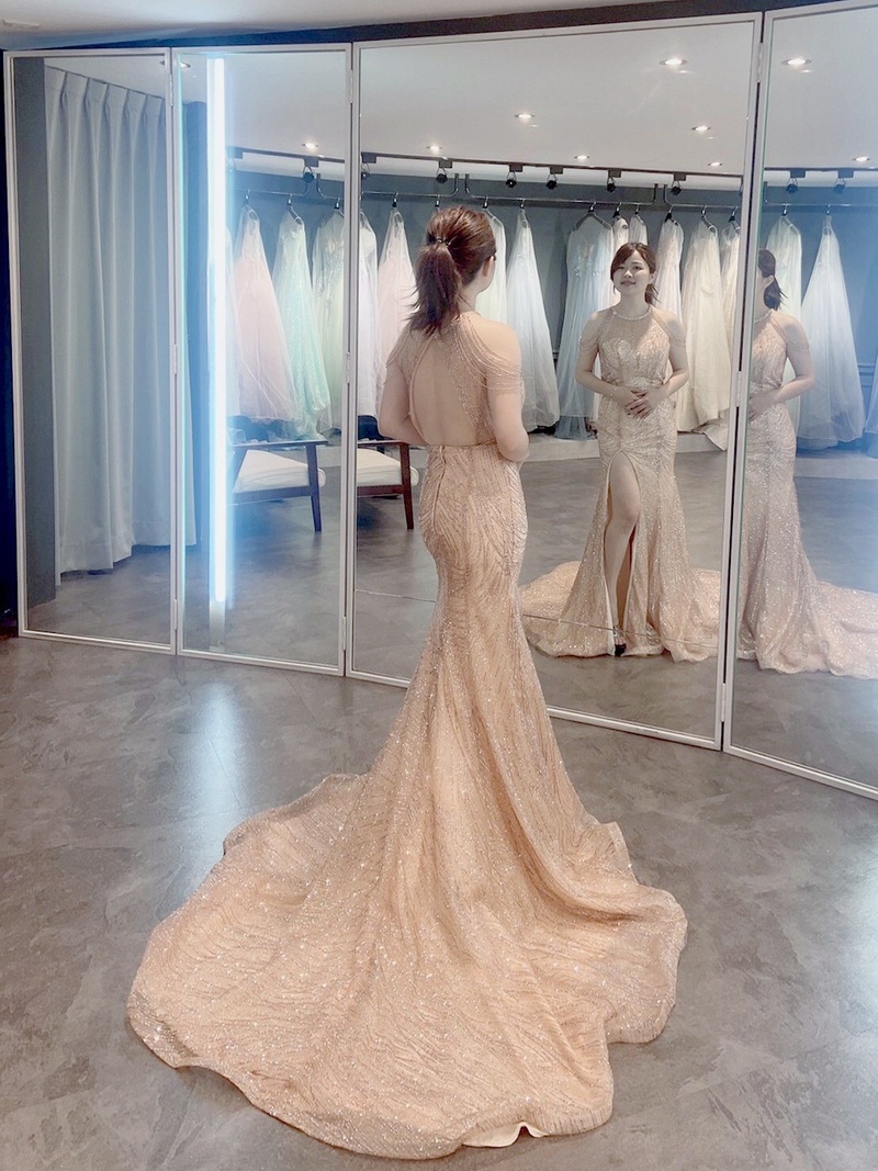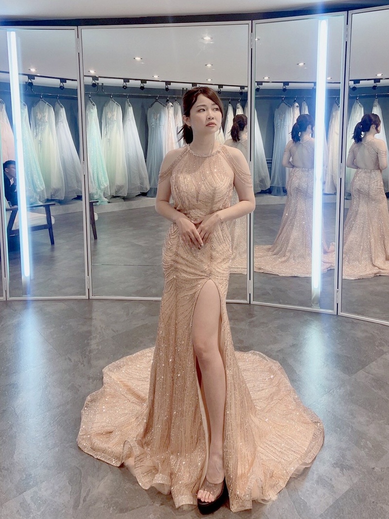 超小心機的一件仙氣禮服 而且穿起來好舒服又氣質的一件,而且中間有大深v 外加露背款隊友就是很愛這種款式禮服超顯身材呀 🥰