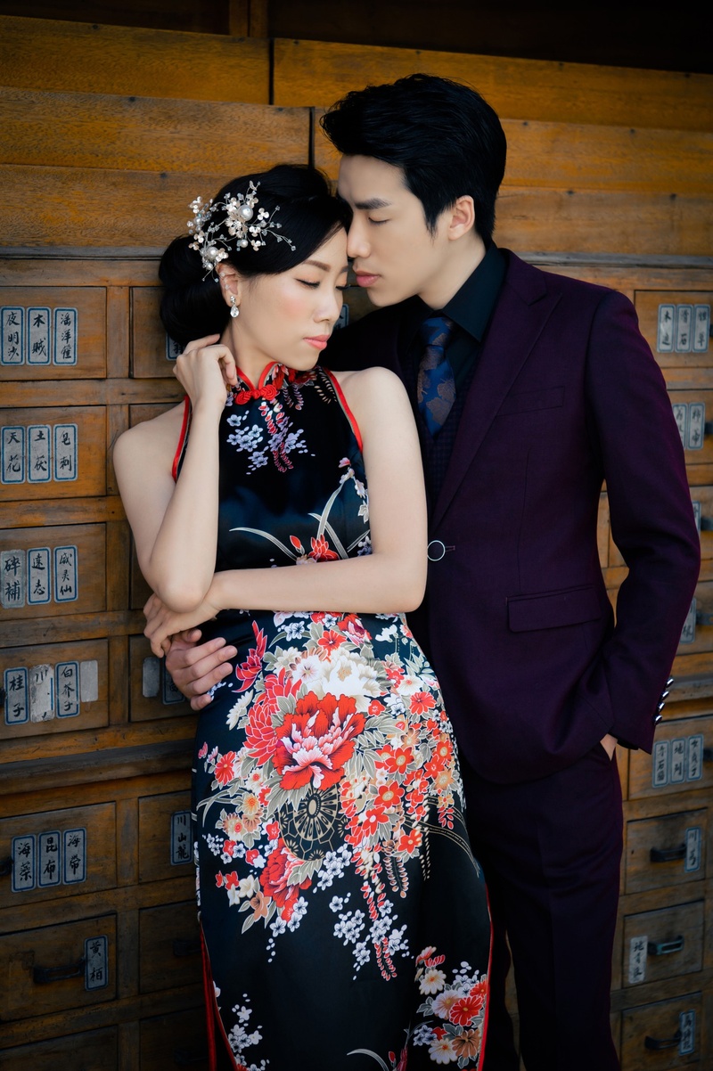 【中式】最讓我訝異的,就是這套旗袍了吧!在比堤挑選婚紗時,還想著一定要挑個美美的深色禮服~在禮服秘書專業的建議以及先生的推薦下,試了一套旗袍~與現在姐妹們現下流行的中式古裝系、宮廷風不同,旗袍也意外的能凸顯我們東方人之美!新秘老師貼心準備的頭飾跟耳夾式耳環都非常漂亮!加上專業的髮妝搭配,都讓服裝更添一層氣質跟霸氣!