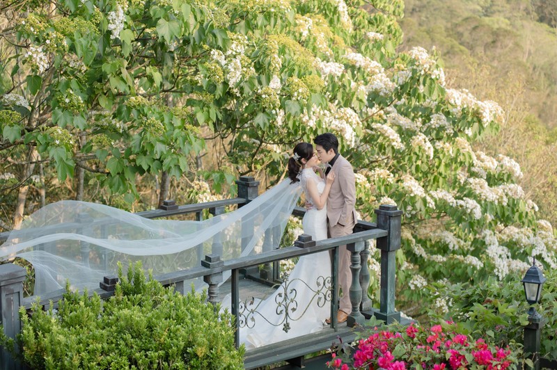 【西式】經典一定要來一套白紗啦!非常幸運的,5月拍攝時,剛好碰到油桐花綻放的季節,也為我們美麗的西式婚紗做了美好的點綴!💗💗