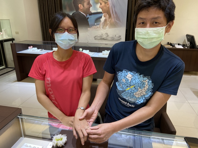 訂婚鑽戒搞定後接著是要選結婚對戒,我們中間又去逛了其他幾家婚戒,最後還是覺得AMC的設計比較順眼,所以又跑回AMC買。這樣一來一往,我幾乎把整間店所有的款式都試戴過一遍了,說到這個必須推薦一下高雄AMC的店員,超親切、超有耐心的陪著有選擇障礙的我挑了整整兩個晚上,順著我的喜好去推測我可能會喜歡的款式,再一一擺到眼前讓我選,並鼓勵我「就是要試戴過才會知道自己喜不喜歡呀」。