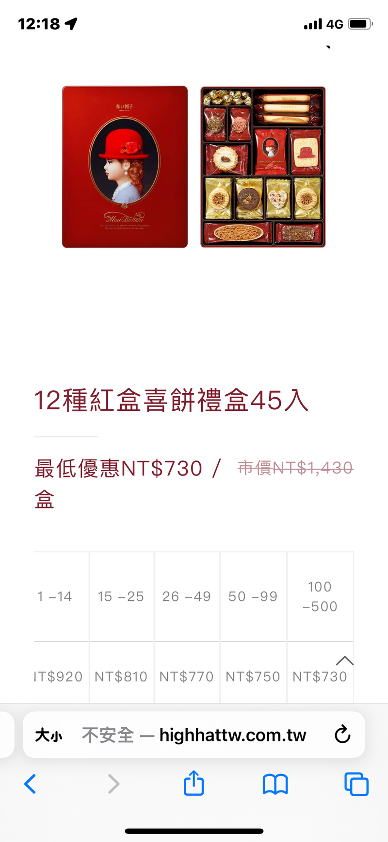 已成團 4-5月 高帽子(紅盒)喜餅團購 匿名鬼鬼Z3YH 揪團 3 次熱心留言 2023-01-29 (編輯記錄) 1.【分類】團購2.【地區】南部3.【物品名稱】高帽子喜餅(紅盒)4.【數量】1005.【物品狀態】全新6.【介紹】7.【價格】730(100盒)8.【交易方式】郵寄9.【聯絡方式】10.【運費】台北門市自取免運/郵寄需自付運費 喜餅 0 3 則留言 0000 5,335 次瀏覽 讚 留言 收藏 分享 分享 分享至 LINE 分享至 Facebook 複製連結