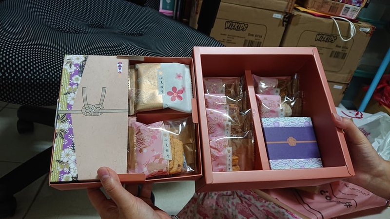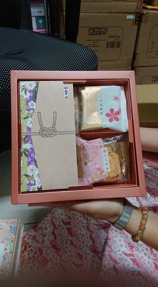 一開始談論婚嫁時就說好只登記,在選喜餅時也很糾結,有太多選擇了,經過篩選挑了3家試吃,試吃後跟老公一致選了七見櫻堂花錦織風呂敷禮盒,一開始是被包裝吸引,覺得非常的精緻,有多種顏色可選
