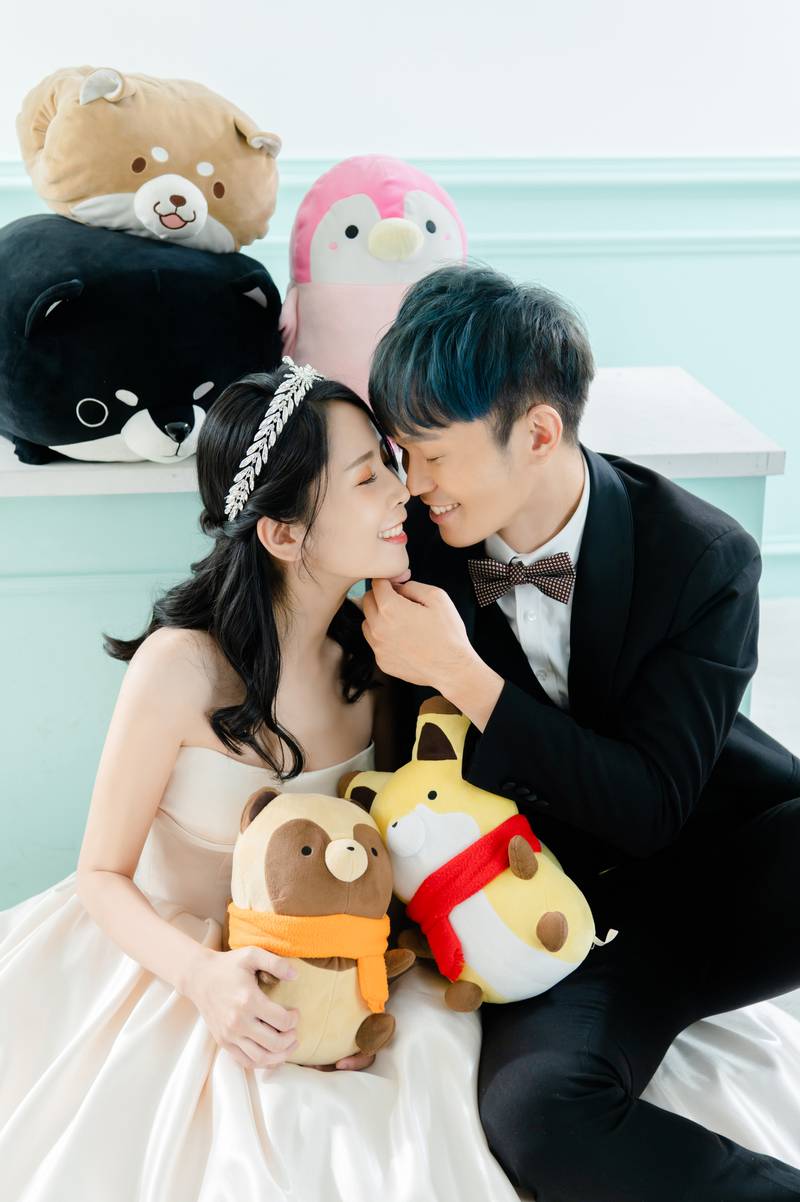 在風格俐落的攝影師Hedwing引導下,即使是拍照新手的我們也很快進入狀況,討論好拍照風格和禮服挑選的要點。畢竟是難得的紀念,我們帶上形同家人的數個寶貝玩偶,也加拍了一件自備的動漫cosplay套裝,私心感謝Hedwing把寶貝們拍得這麼可愛!cos照也超乎預期的美啊。:.゚ヽ(*´∀`)ノ゚.:。