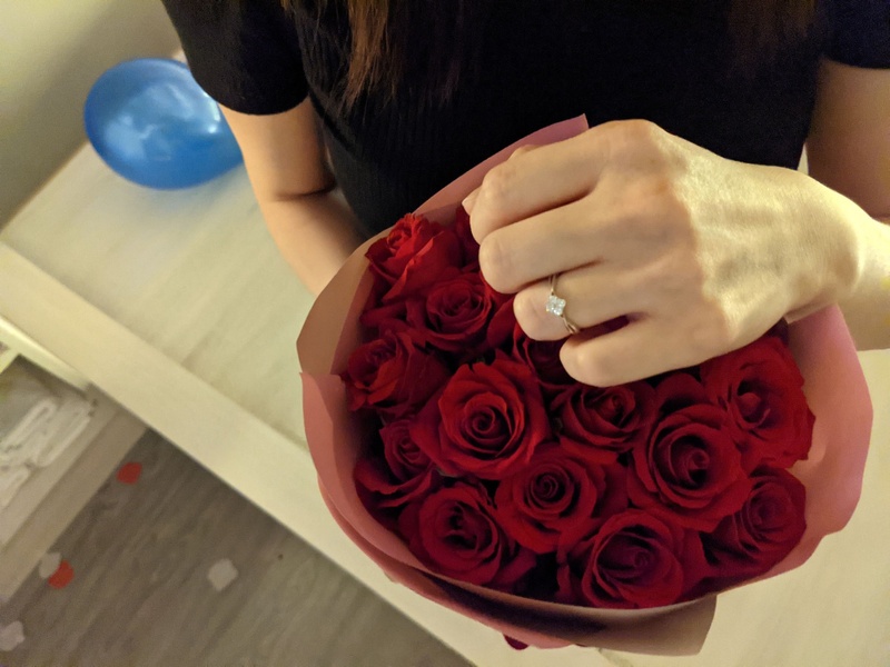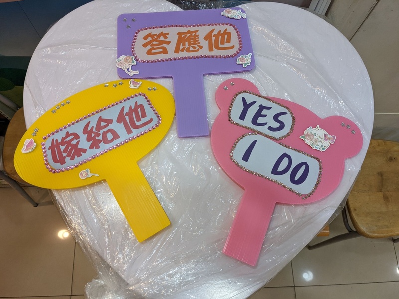 因為先生先計畫要來個驚喜求婚,是由他先偷偷到京華鑽石新竹店挑選求婚鑽戒,並在京華鑽石新竹店雅菁與其他同仁協助下,製作了精美的求婚刊版,以及外借布置燈飾,最後加上親友的神助攻下,順利的求婚成功~