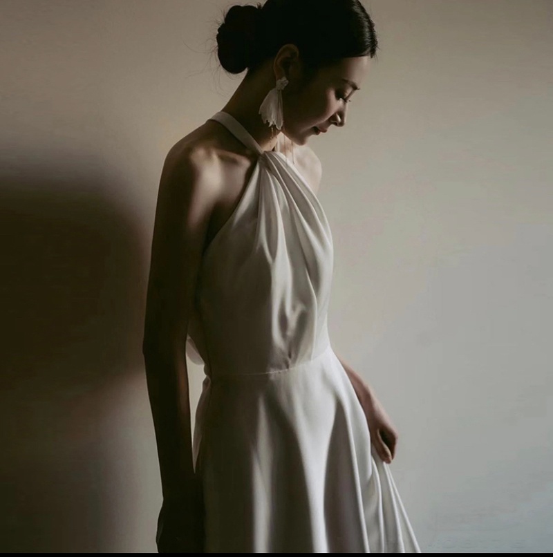 【已售出】魚尾法式貼身婚紗-繞頸式