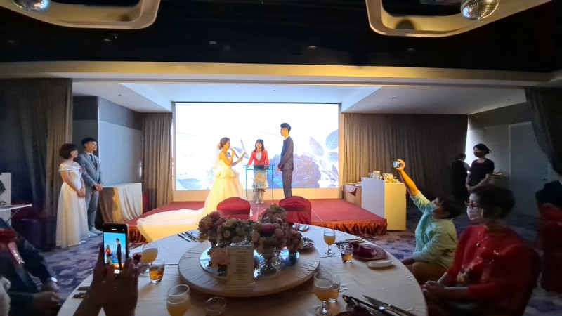 因為我們婚紗是自購,很感謝思吟在婚禮前一天,耐心等待時間delay的我們,協助用推車搬運用品、陪我們再次確認場地和影片播放...等,甚至幫我們升級、打開隔板能有更大的空間可使用