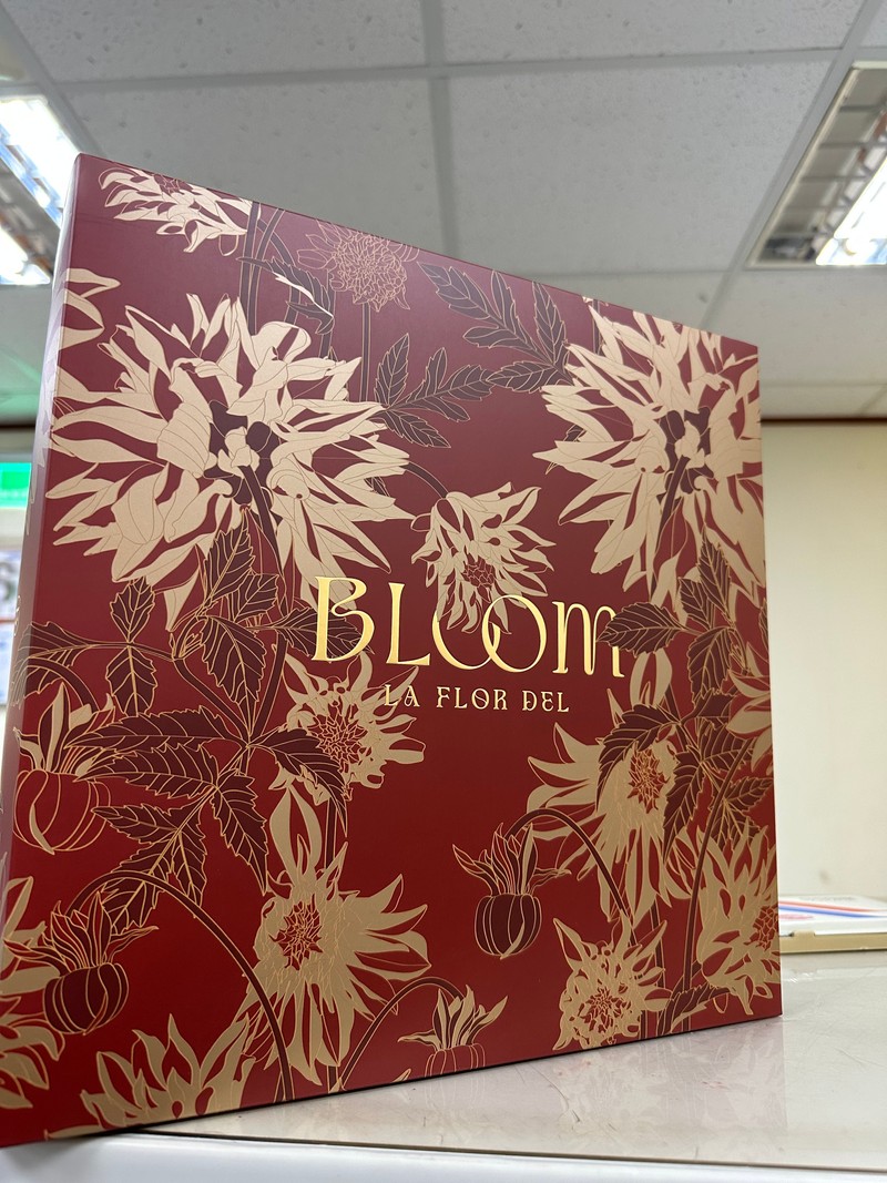 一開始在網路看到bloom喜餅就覺得禮盒包裝實在太美了,尤其是時髦花綻暗紅色底色加上金色構成的花樣非常有結婚喜氣的感覺。