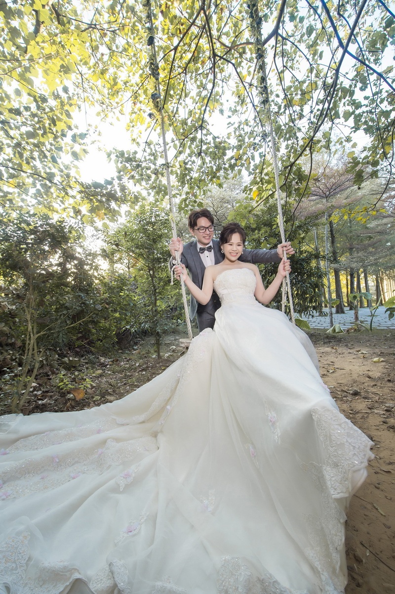 然後安排的攝影師-楊總監(jacky),從一開始討論拍照地點、風格,都可以跟我們解釋很清楚,讓我們可以了解想拍的風格,但拍照前有聽說總監對於拍攝很堅持,在拍照時也很嚴肅,讓我有點緊張,但拍攝當天,總監很會逗我們,我先生拍照笑起來都很自然,燈光師-小吳當天也幫了我們很多,我先生衣服整理,一整天拍照下來讓我們都可以很自然,很順利的拍攝完成。