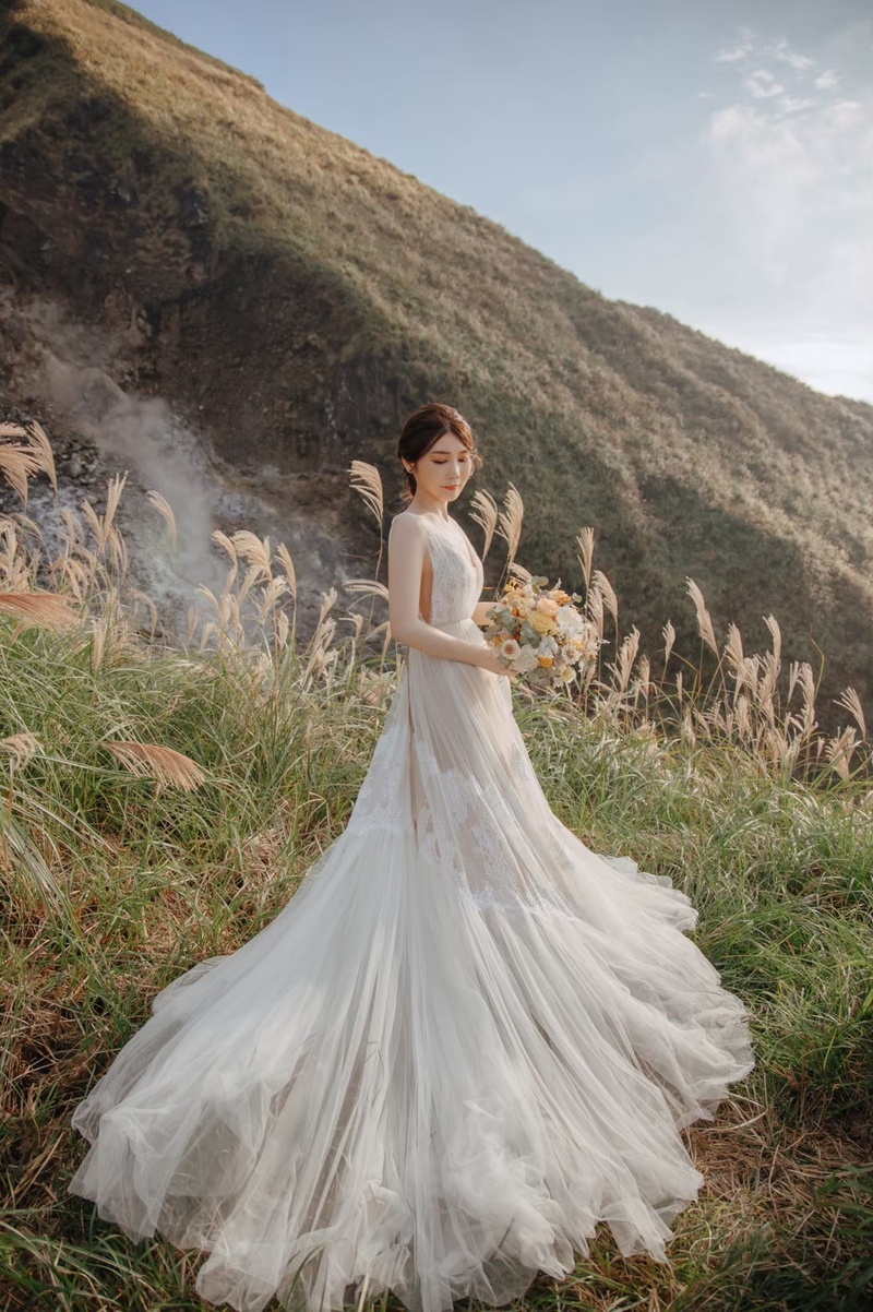 逆光私密景點再加上夢幻禮服限定季節的芒草,有多美(是說風景)