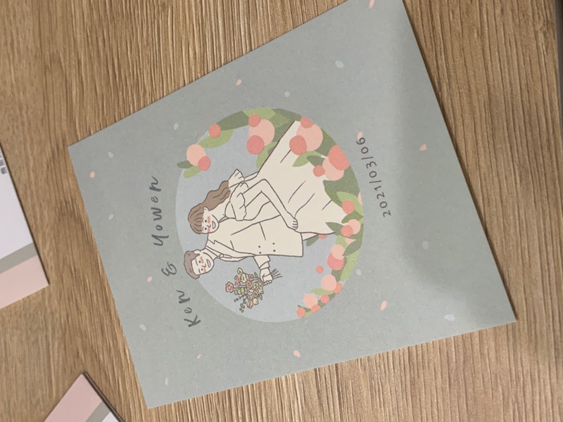 尋覓喜餅廠商的過程中,被順道喜餅可愛的風呂敷包裝所吸引。透過官方Line訂了一盒試吃。到貨的包裹中附有一張手寫卡片,讓人感覺很貼心!