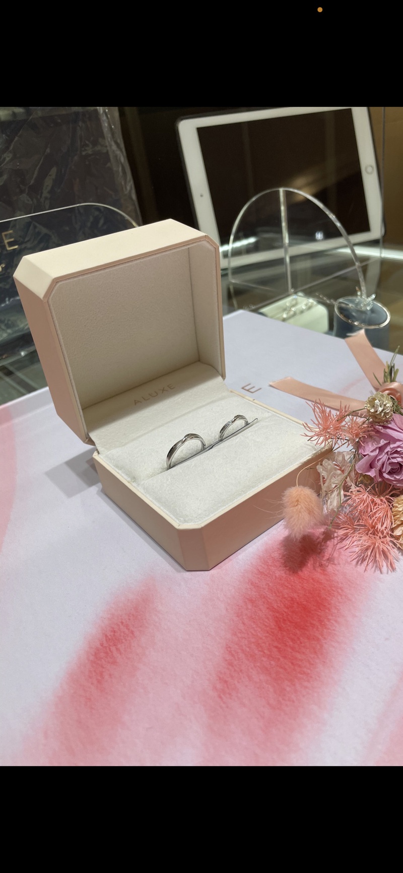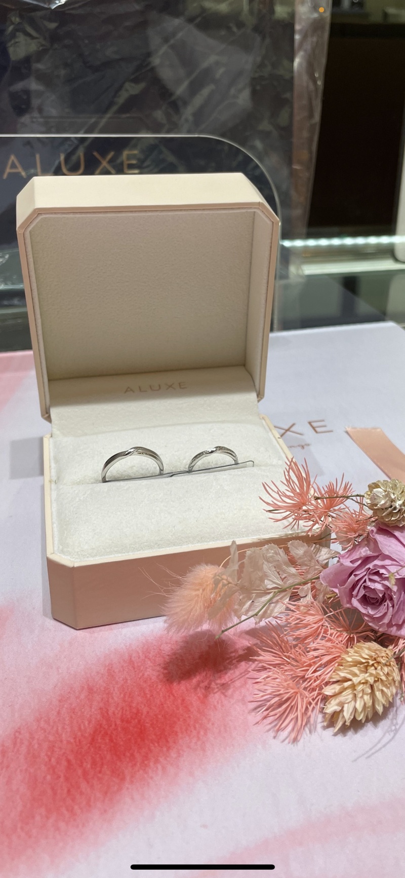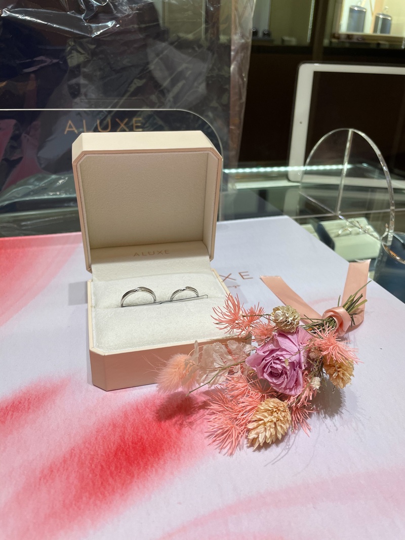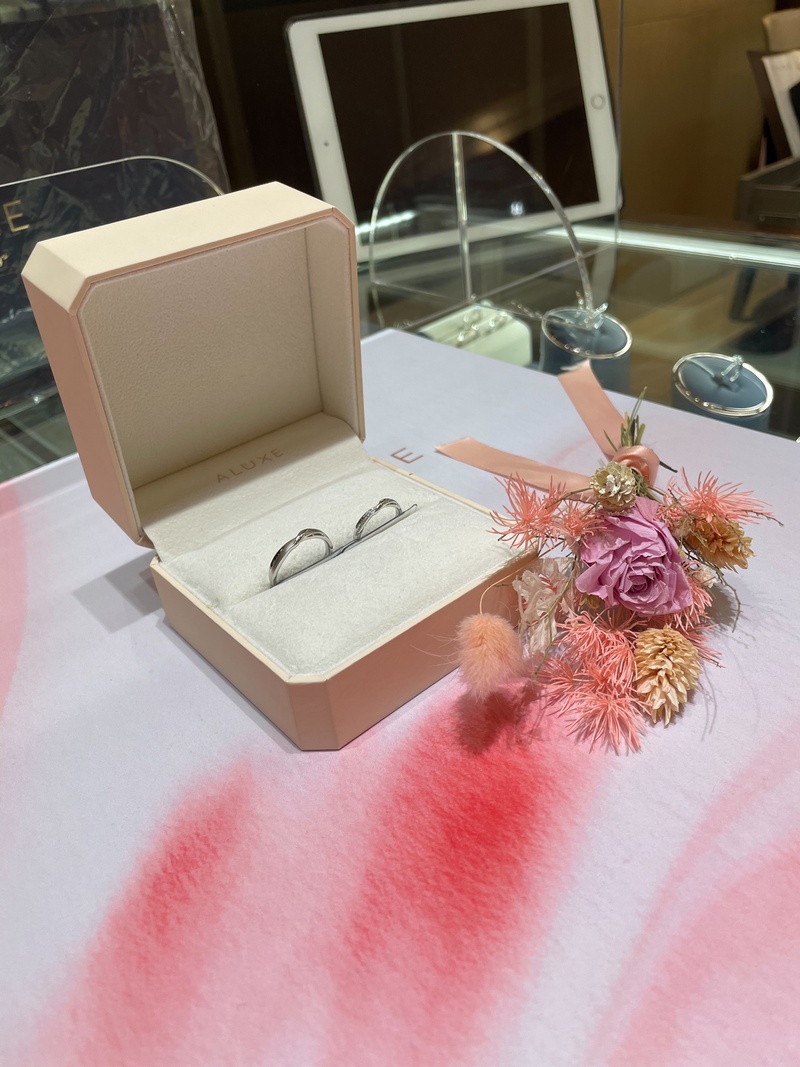 要選擇哪一家的婚戒和怎麼挑選,後來在網路上尋找,找到了ALUXE 亞立詩婚戒因為裡面有許多款式屬於簡約風格我們也比較喜歡簡約的感覺,而且ALUXE 亞立詩他們也有很貼心的服務是戒指裡可以刻屬於我們的名字和結婚日期,也會量身訂做戒圍很想要修改的戒指款式這樣婚戒才會更獨一無二,於是我們預約了桃園新生店去做挑選,一進去店裡店員就很親切與體貼的幫我們做了許多介紹,後面看了許多款式選擇了這對婚戒很簡約也很符合我們想要的