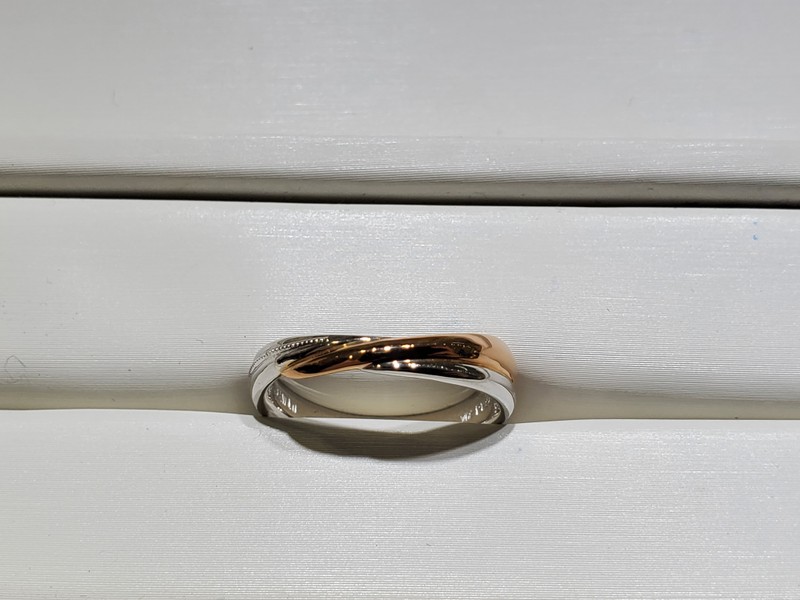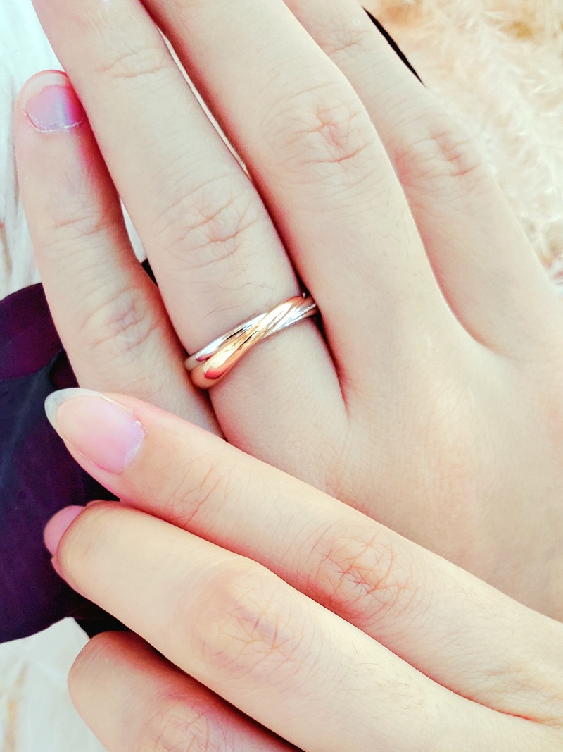 老公雖然平常很樸實,但內心却很悶騷,無法滿足單單一個環形的戒指那麼簡單,當他看到可以雙色製作鑽戒時,二話不說就決定了,雖然沒有鑽石鑲在上面,但滾珠的設計讓婚戒別有特色~