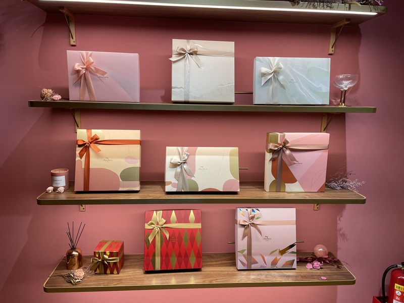 我們是去大安店進行試吃體驗,店內裝潢讓人感到華麗且舒適,是間巧克力專賣店,當天試吃喜餅的客人蠻多組,等了一下到我們。