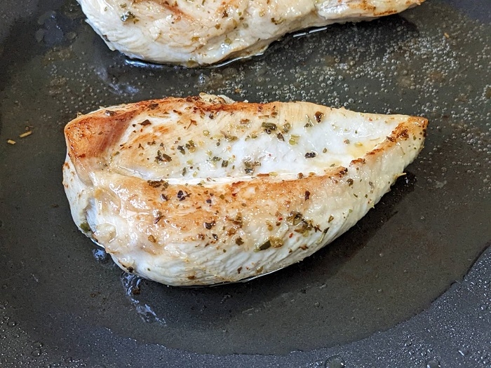 之後蓋上鍋蓋轉中火,譲雞胸肉裡面熟透就可以了唷~